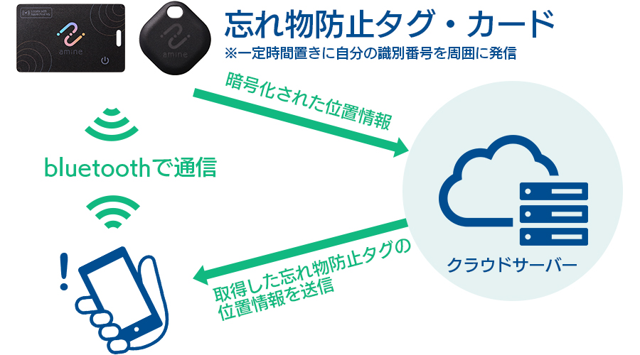 家のカギ・財布・カバンなどに付けるだけで、スマートフォンで「位置」や「置き忘れ」を管理できる持ち物追跡デバイスです。毎日の外出や通勤・通学にも活躍! - スマートタグの仕組み(GPS不要で手軽&長持ち!)