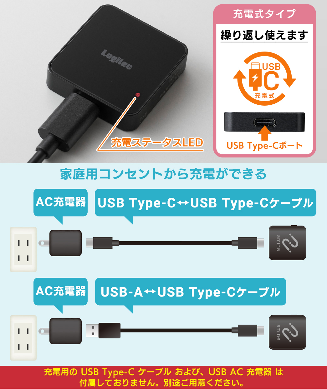 ※充電用のUSB Type-CケーブルおよびUSB AC充電器は付属しておりません。別途ご用意ください。