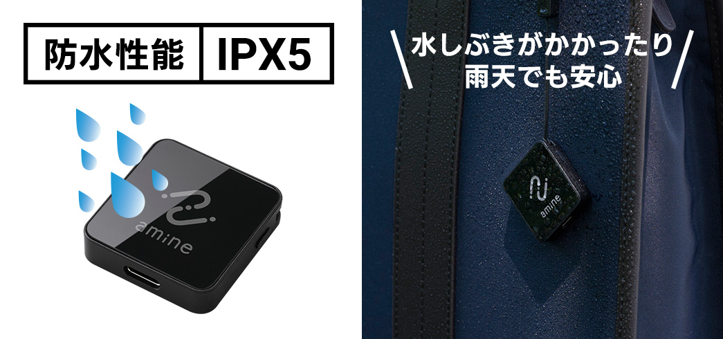 IPX5の防水設計により、水がかかっても安心。日常の水しぶきや大雨でも気にせず使えます。